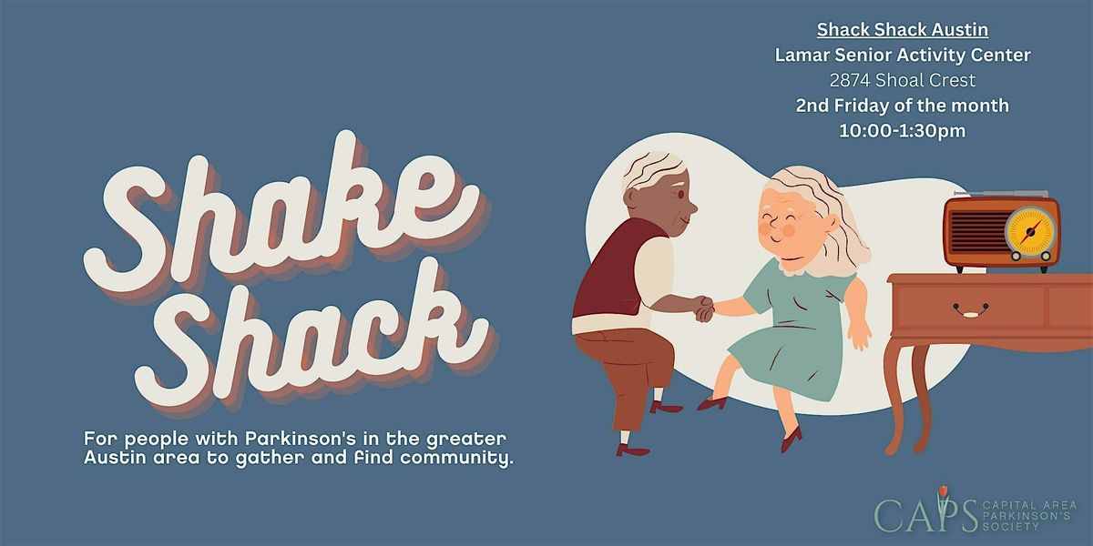 The Capital Area Parkinson's Society is expanding its support options available to our community members with Parkinson's and those caring for them by providing monthly social gatherings called Shake Shack! Anyone with Parkinson's and their care partner in the greater Austin area is welcome.