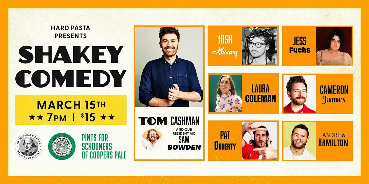 Hard Pasta presents Shakey Comedy! Get ready to laugh your socks off at the Shakespeare Hotel on March 15, 2026 at 7:00 PM (Australia/Sydney Time). Join us for a night of hilarious stand-up comedy, guaranteed to have you rolling in the aisles. Grab a pint of Coopers Pale for just $9 and enjoy this side-splitting event!