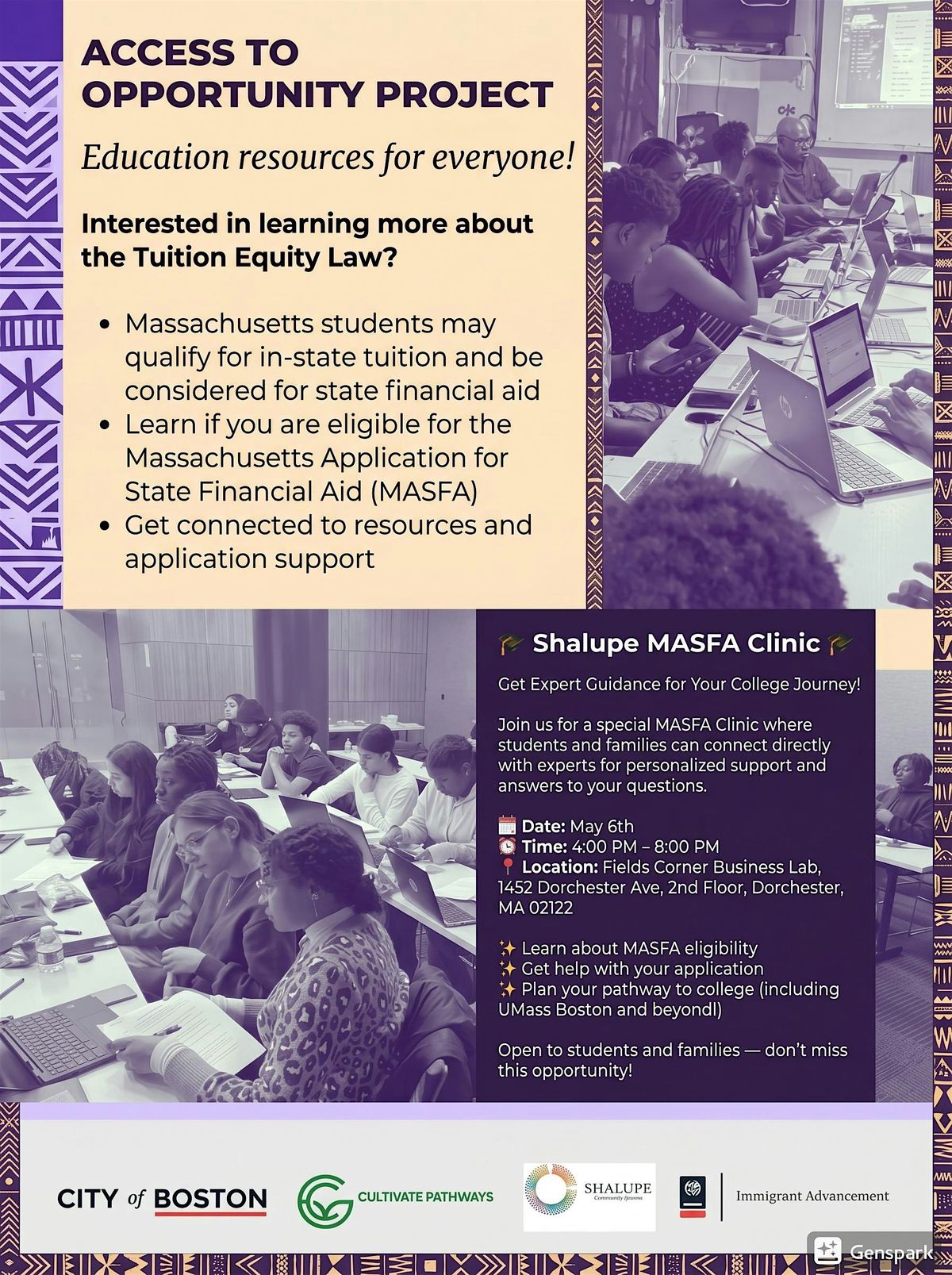 Unlock college access! Join Shalupe’s MASFA Clinic for expert guidance on financial aid & your path to higher education.