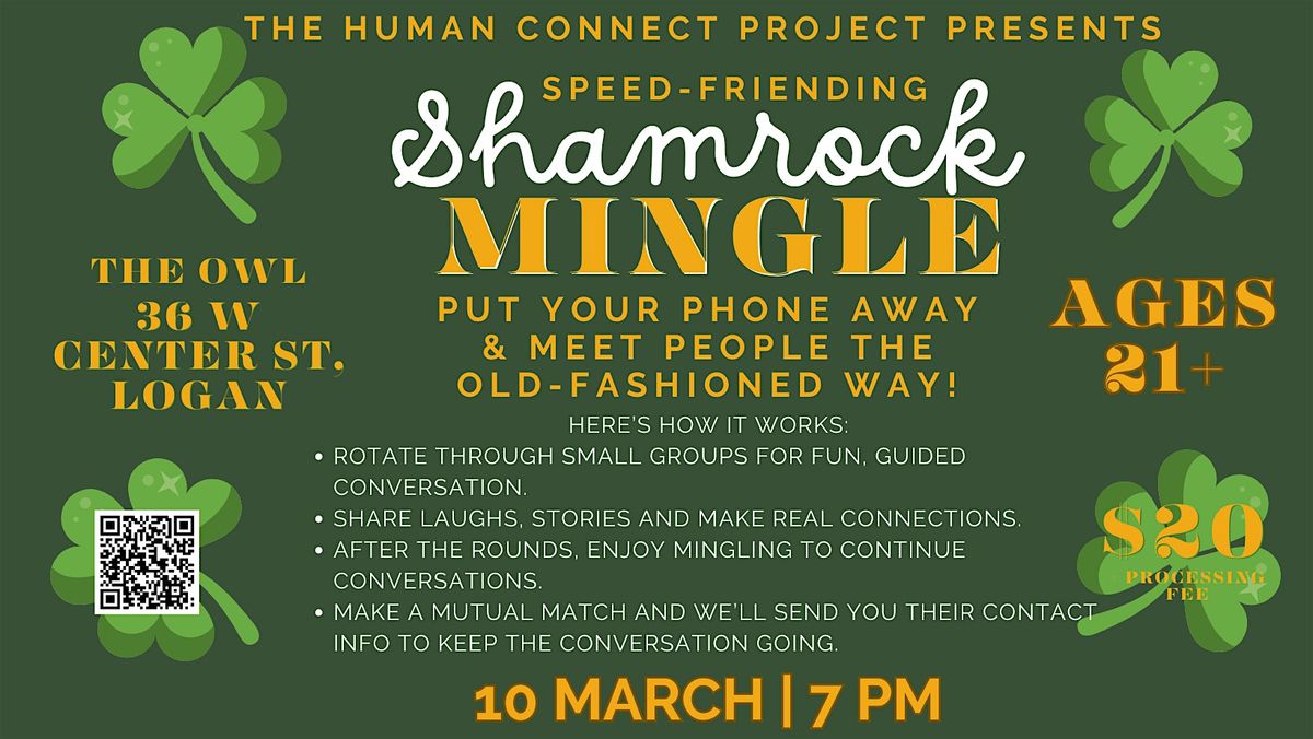 Join us for a festive evening of connection at our Shamrock Mingle Speed Friending Night on March 10th at The Owl! This St. Patrick’s-inspired gathering is all about meeting new people in a relaxed, welcoming, and low-pressure environment. Whether you’re new to the area, looking to expand your circle, or simply want a fun night out, this event makes it easy to spark real conversations and genuine friendships.