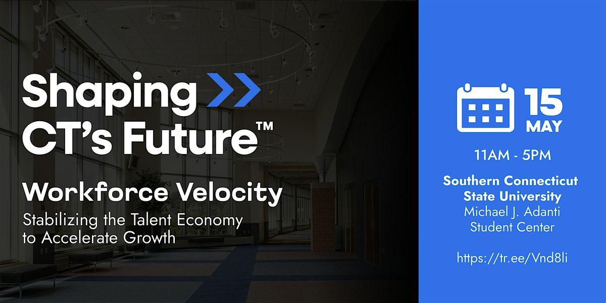 On May 15th, we’re bringing together the state’s boldest leaders at SCSU for Shaping CT’s Future: Workforce Velocity. We’ll be discussing the rate at which people stabilize, earn, advance, and sustain upward mobility.