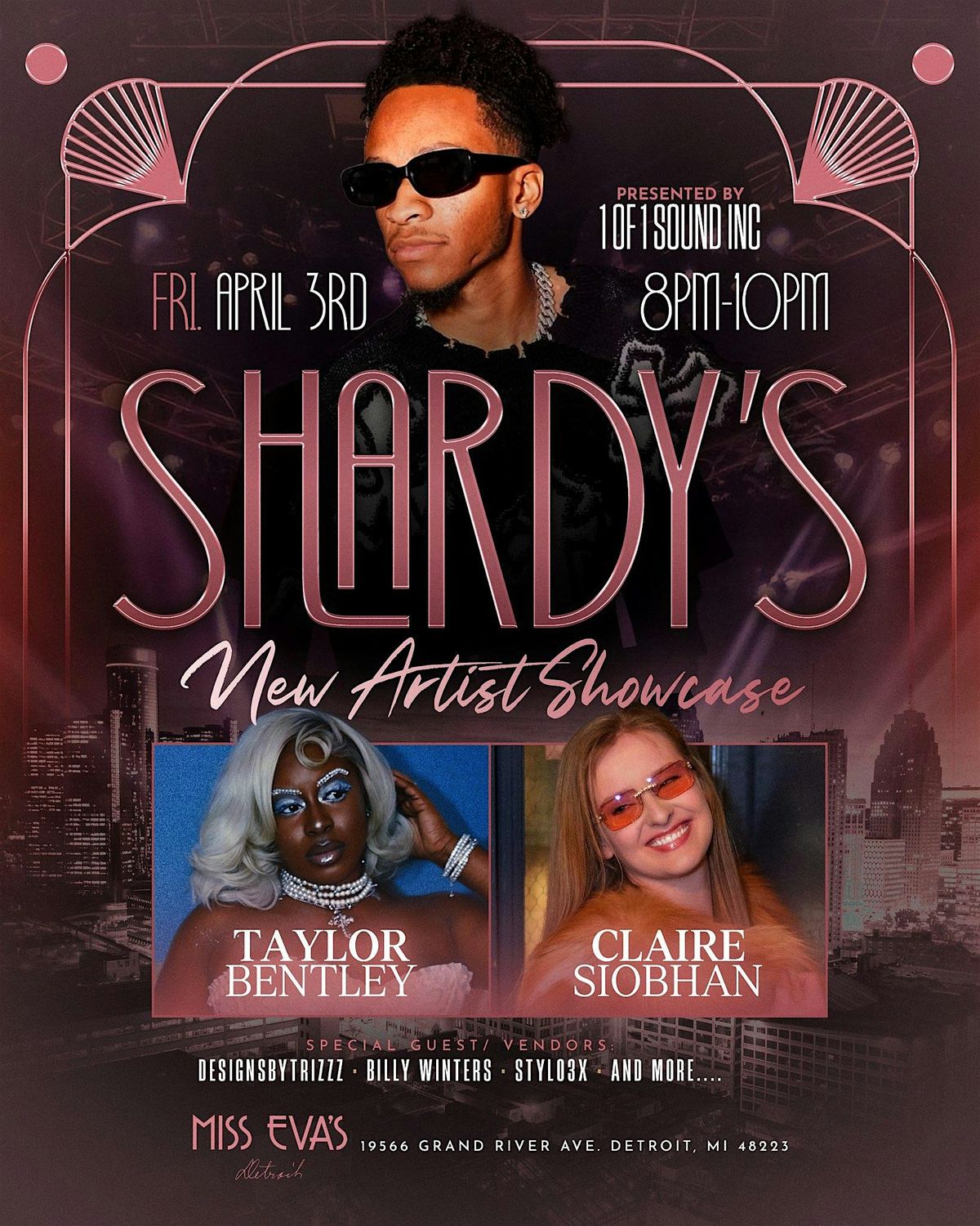 Shardy and 1 of 1 Sound Inc. Presents a NEW ARTIST SHOWCASE highlighting 3 up and coming artist from Metro Detroit and surrounding areas.