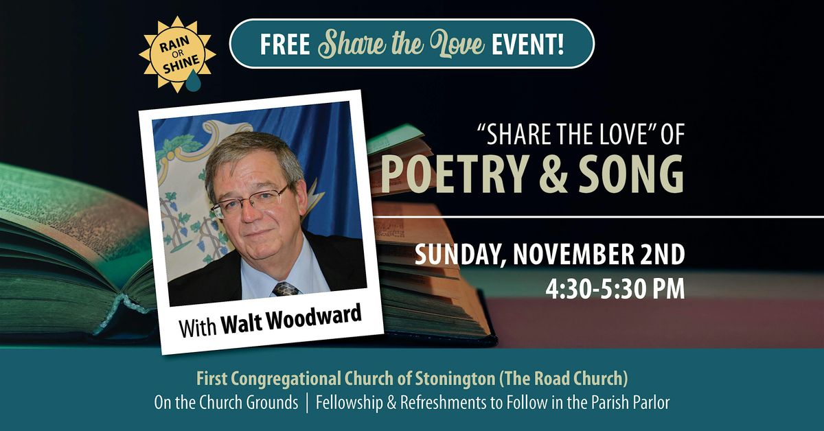 As part of our ongoing celebration of The Road Church’s founding, we invite you to a special evening of poetic reflection and musical storytelling with Connecticut State Historian Emeritus Walt Woodward.