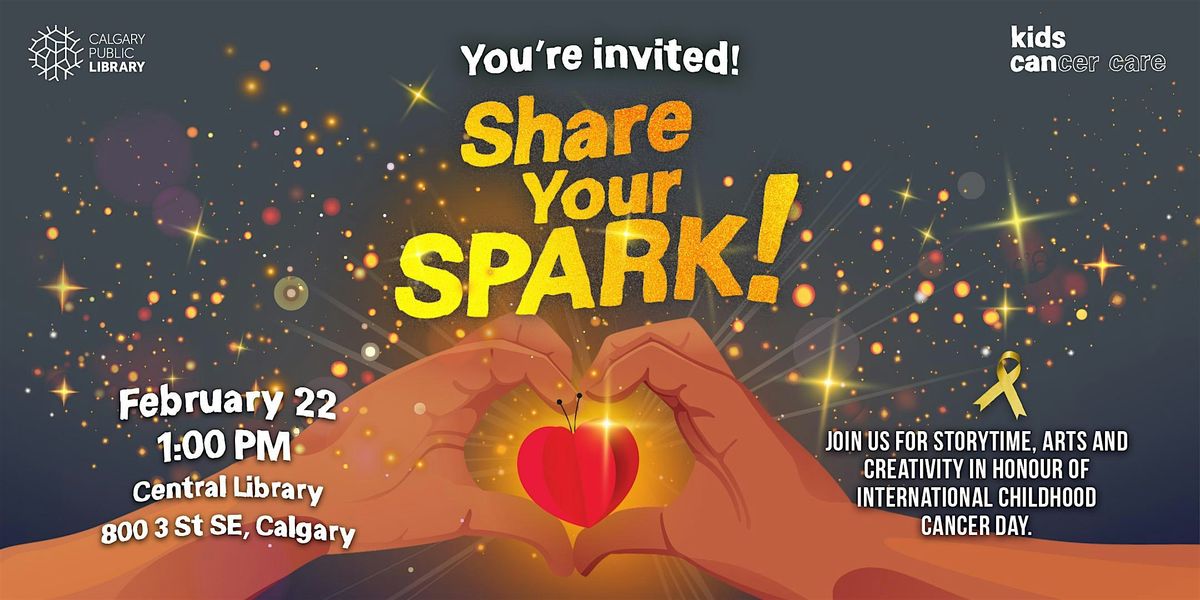 This is a free public event! Join us for a magical afternoon as we invite you and your family to Share Your Spark in honour of International Childhood Cancer Day — a heartwarming event featuring storytime, arts & crafts, fun photo booth, live music, snacks, imagination, and celebration.
