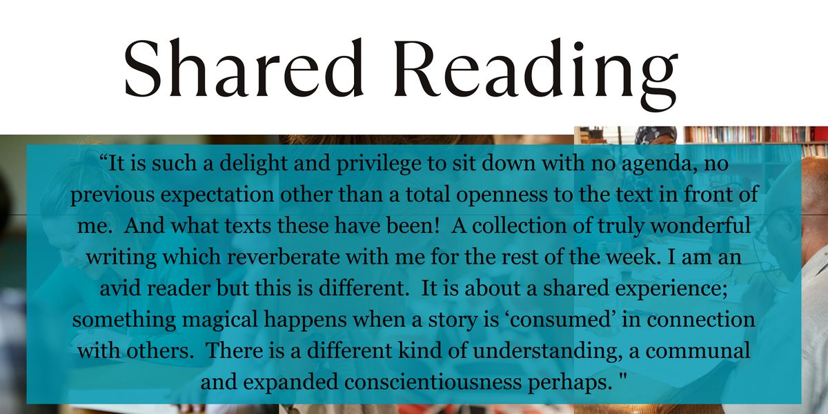 Shared Reading by The Reader, a national charity, is a unique experience that helps thousands of people to connect, feel good and live well.