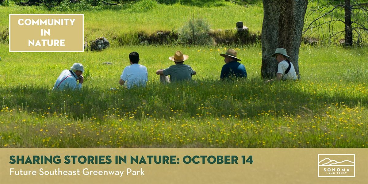 Have you lived a full life and find that you have stories to share? Have you figured out a few things that you wish you knew when you were younger? Do you have life lessons that others might benefit from? Join Sonoma Land Trust on the Santa Rosa Southeast Greenway for Sharing Stories in Nature, where we’ll gather to reflect upon and share our stories together. Whether you like to talk, write, read, draw, or simply listen, we’ll have opportunities for each of us to share some of our significant moments and thoughts together.