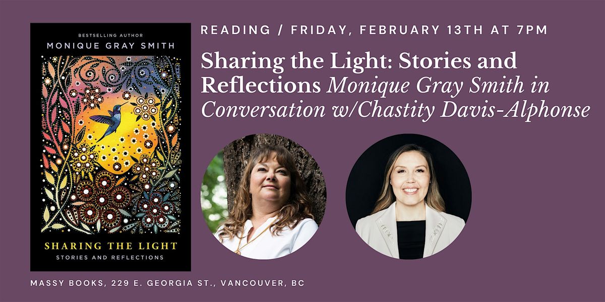 Join Massy Books and House of Anansi Press as they host Monique Gray Smith in Conversation with Chastity Davis-Alphonse for the launch of Friday, February 13th at Massy Books. Doors open at 6:30, event starts promptly at 7 pm.