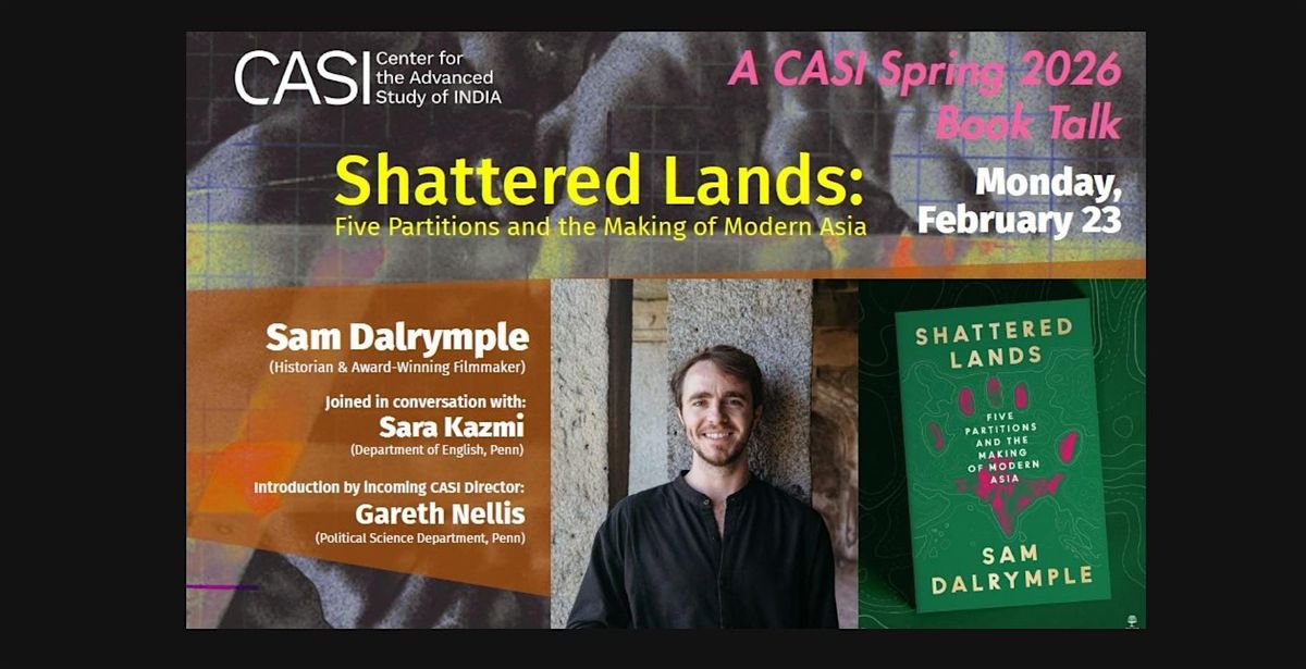 Sam Dalrymple is a Delhi-raised Scottish historian and award-winning filmmaker. He graduated from Oxford University as a Persian and Sanskrit scholar, and also studied at the University of Isfahan and Ferdowsi University of Mashhad in Iran. He has worked across South and Central Asia, including stints with Turquoise Mountain in Kabul, and with the Aga Khan Trust for Culture in Hunza and Lahore. In 2018, he co-founded Project Dastaan, a peace-building initiative that reconnects refugees displaced by the 1947 Partition of India. His debut film, Child of Empire, premiered at the Sundance Film Festival in 2022 and received the inaugural XR History Award from the Körber-Stiftung Foundation. His animated series, Lost Migrations, sold out at the British Film Institute (BFI) the same year. Dalrymple’s writing has appeared in The New York Times and The Spectator, and his work has been featured in TIME, The New Yorker, and The Economist. He is a columnist for Architectural Digest. In 2025, Travel & Leisure named him “Champion of the Travel Narrative.” His debut book, Shattered Lands: Five Partitions and the Making of Modern Asia (William Collins & Harper Collins India; June 2025; WW Norton & Company, February 2026) was an International Bestseller, reaching #1 in India and was a “Best Book of 2025” for the Financial Times, The Week, Spectator, BBC History Magazine, NPR, History Today and Daunts.