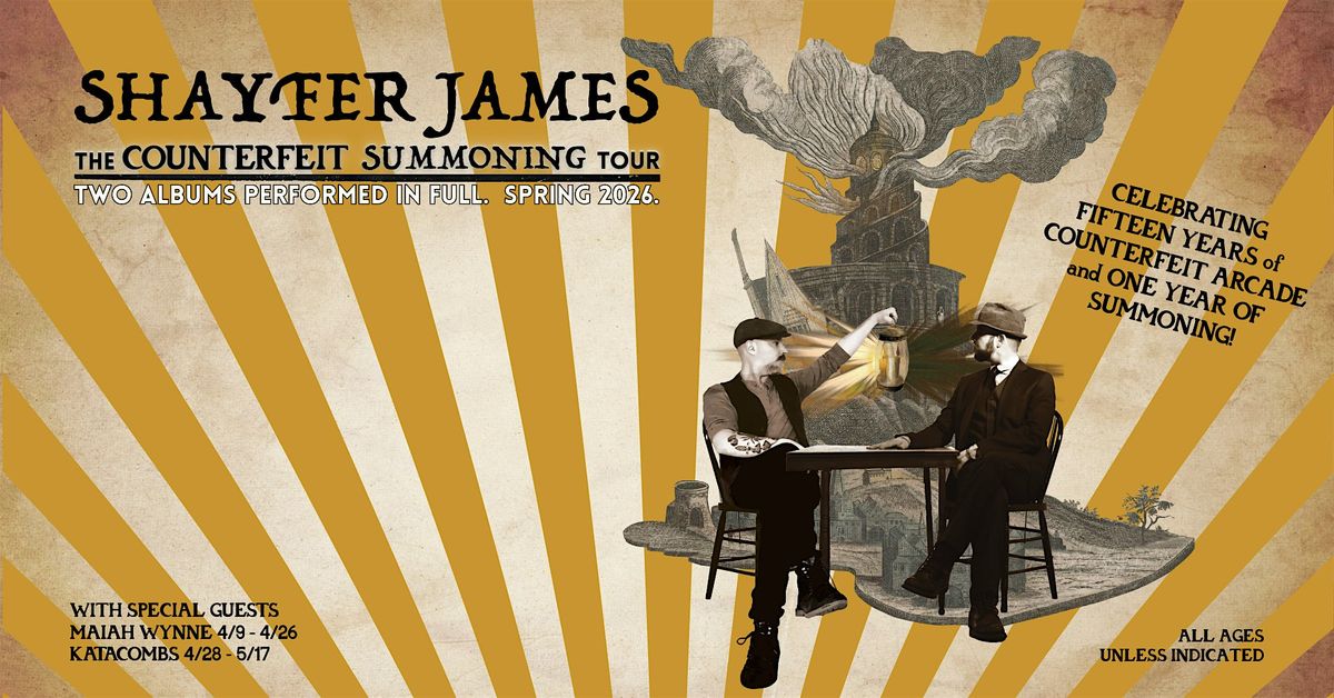 Shayfer James performs his Counterfeit Arcade and Summoning albums in full, with songs from both albums woven together into a single continuous live set. Celebrating 15 years of Counterfeit Arcade and 1 year of Summoning, the show includes songs never previously performed live and others that may not be played again for quite some time.