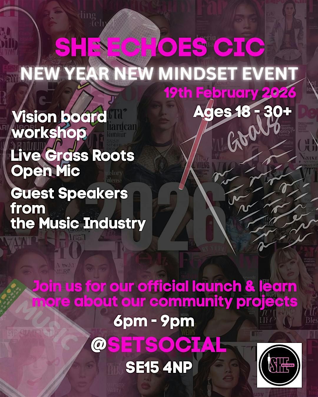 Join us for the official launch of She Echoes CIC, a new female-led initiative empowering young women in South London through music, mentoring and creativity. This February 2026 event introduces our mission and marks the start of our two-year development programme.