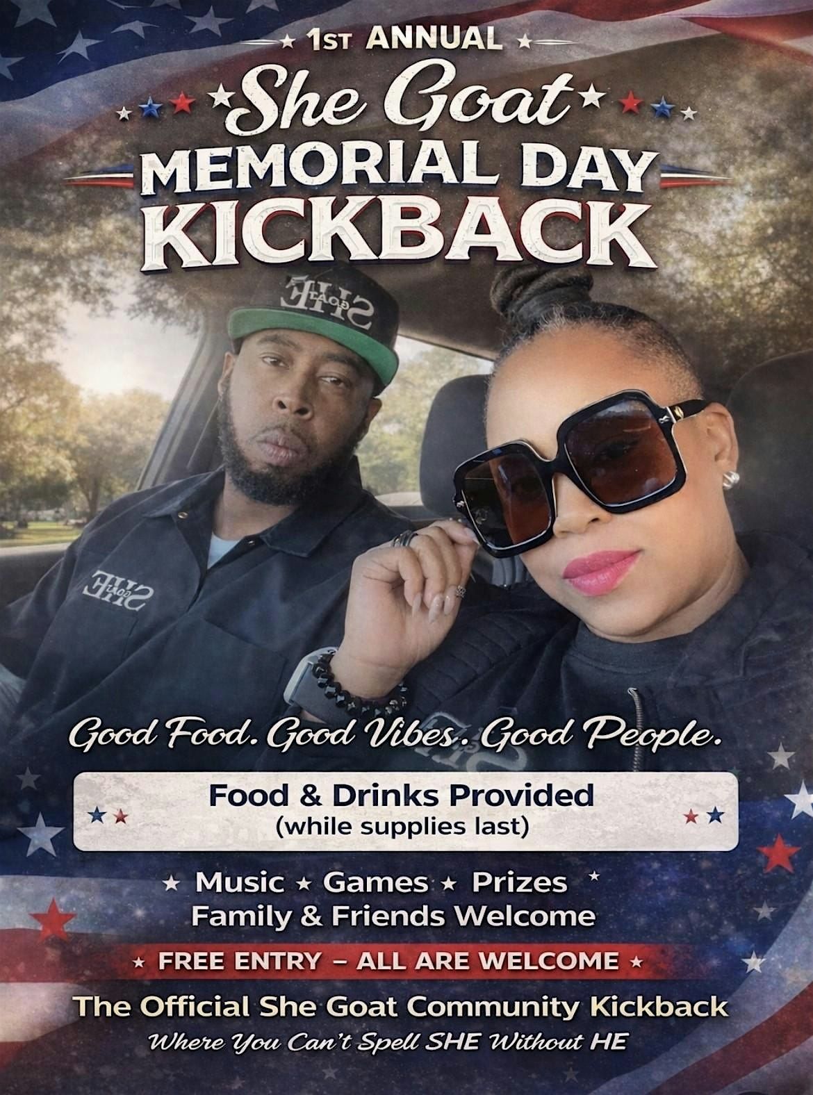 Get ready for a chill day with great vibes and even better company at the She Goat Memorial Day Kickback! This event is all about kicking back, having fun, and giving back. Bring your family, free food, games which include cards, dominoes, sack race, double dutch, over sized games and more. Enjoy some tunes, and soak up the good energy.BYOB. Don’t miss out on the ultimate Memorial Day hangout – it’s gonna be a blast!