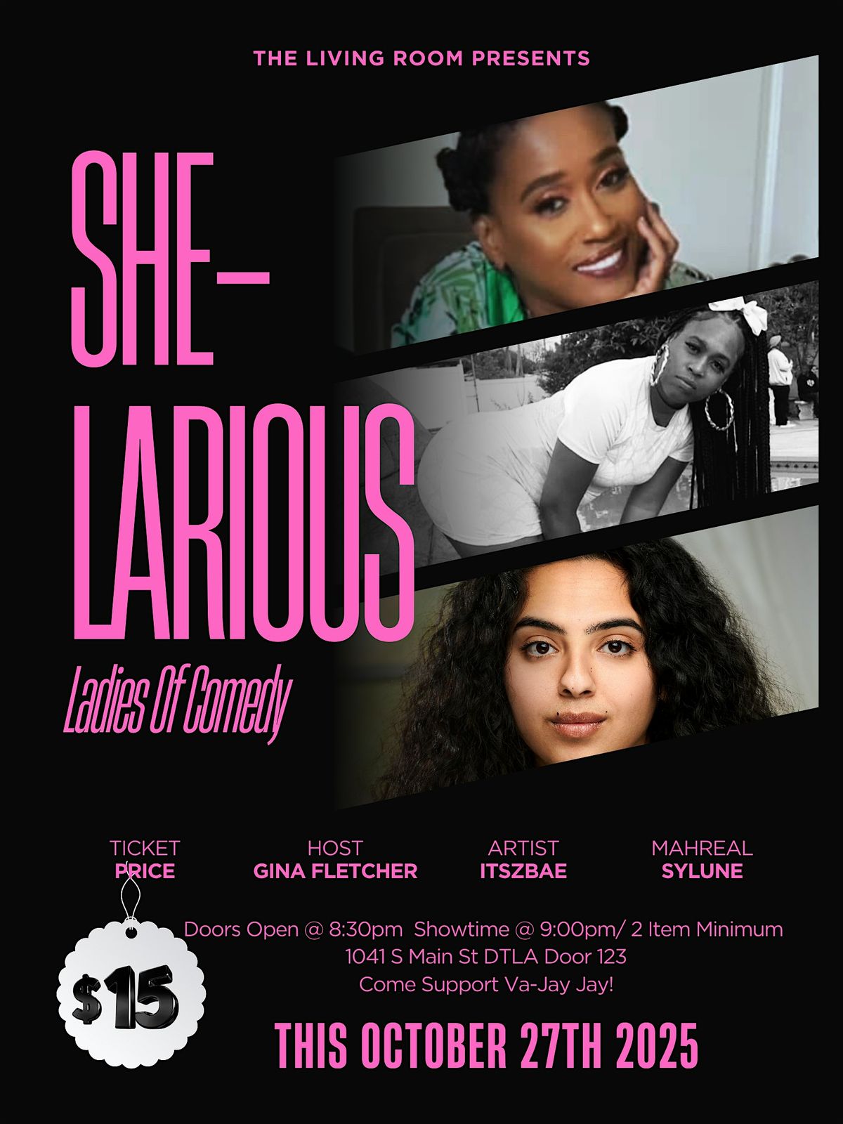 Welcome to She Larious Ladies Of Comedy! Get ready to laugh your socks off at this hilarious event featuring some of the funniest female comedians around. Join us at The Living Room DTLA for a night of non-stop laughter and entertainment. These talented ladies will have you rolling in the aisles with their witty jokes and clever humor. Don't miss out on this evening of comedy gold - grab your tickets now!