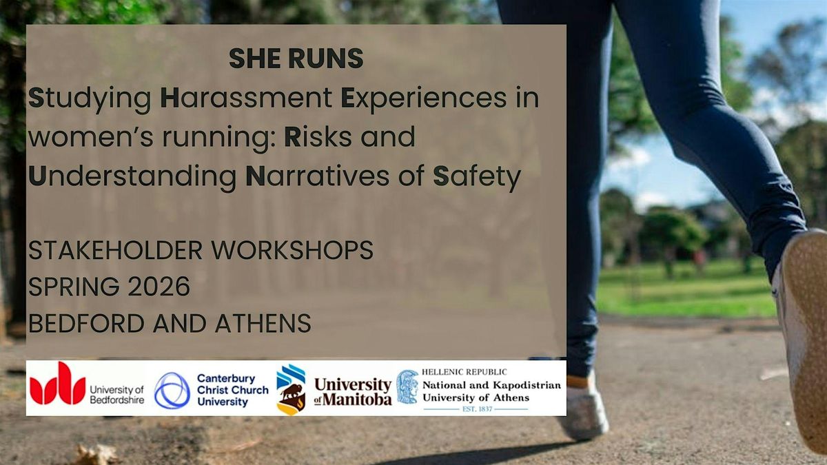 The SHE RUNS research team invite stakeholders in fields including sport development, policing and crime, community, planning, public health and women’s advocacy to a one day workshop in Bedford to: