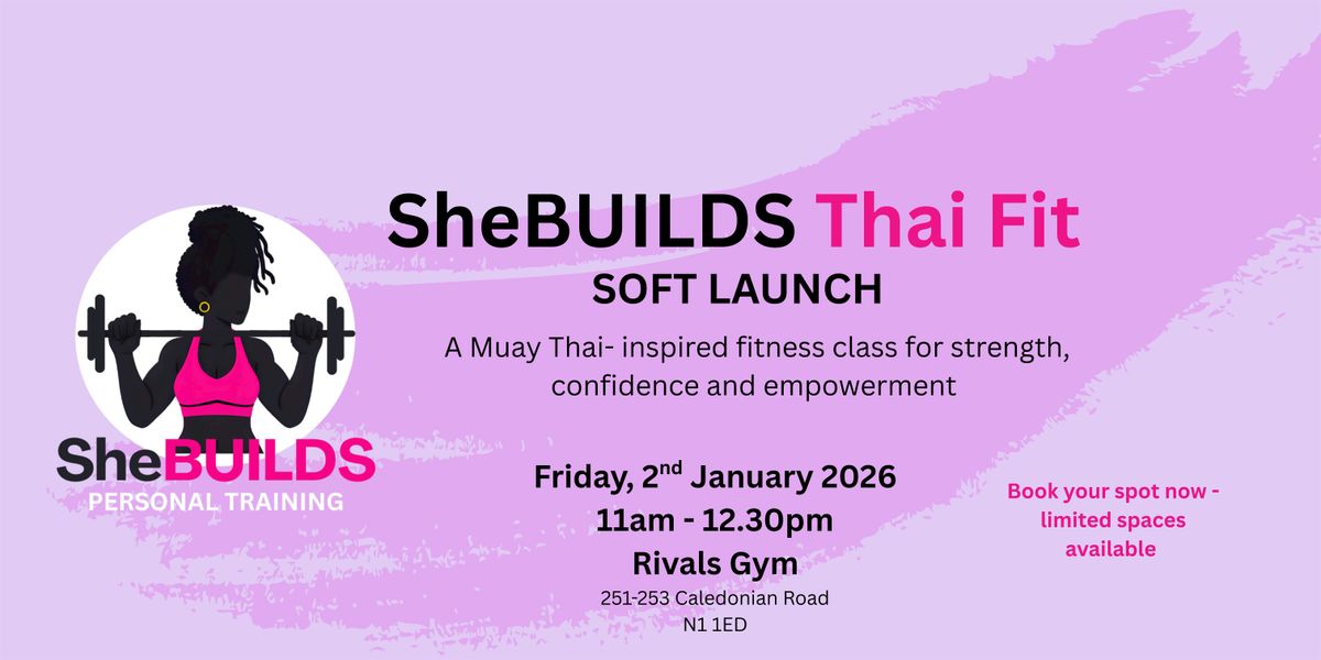 This event marks the official introduction of SheBuilds Personal Training and the launch of my brand-new Thai Fit class β a high-energy fusion of Muay Thai-inspired movement, rhythm, and functional fitness.