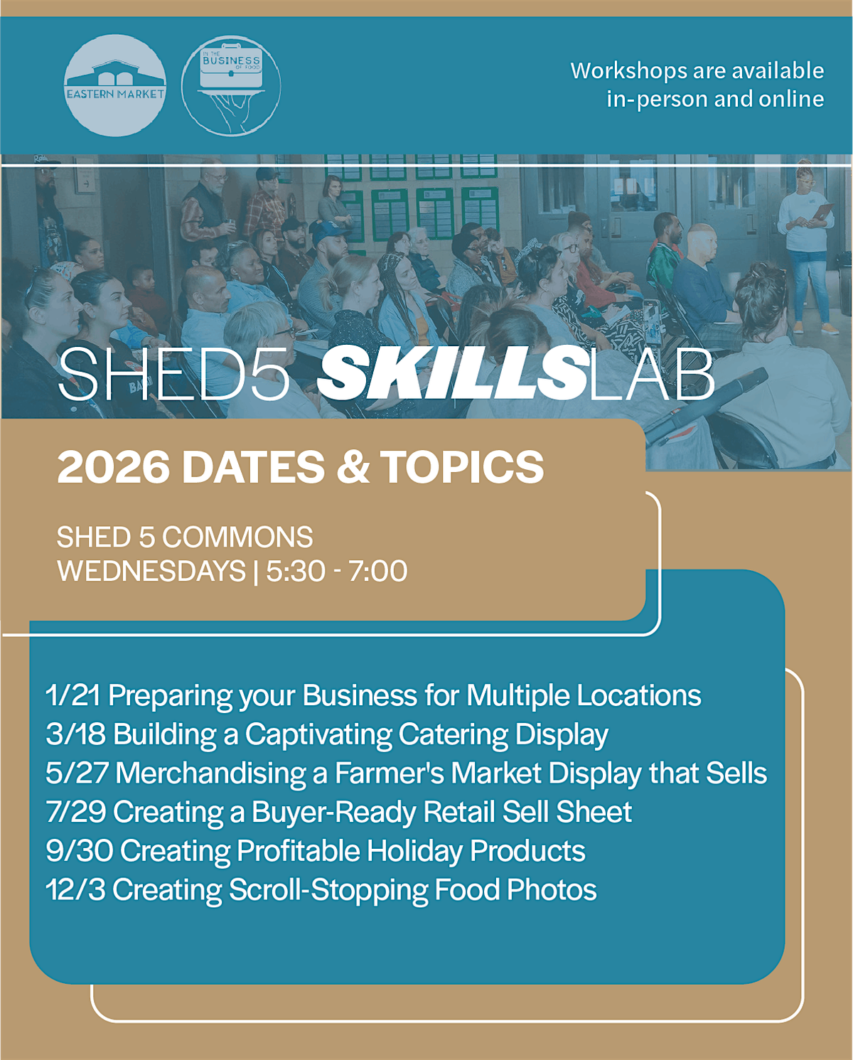 The Shed 5 SkillsLab is a bi-monthly, hands-on workshop series designed for food entrepreneurs who want practical tools they can use immediately. Each session focuses on a specific business skill led by industry experts: from merchandising and catering displays to retail readiness and scaling.