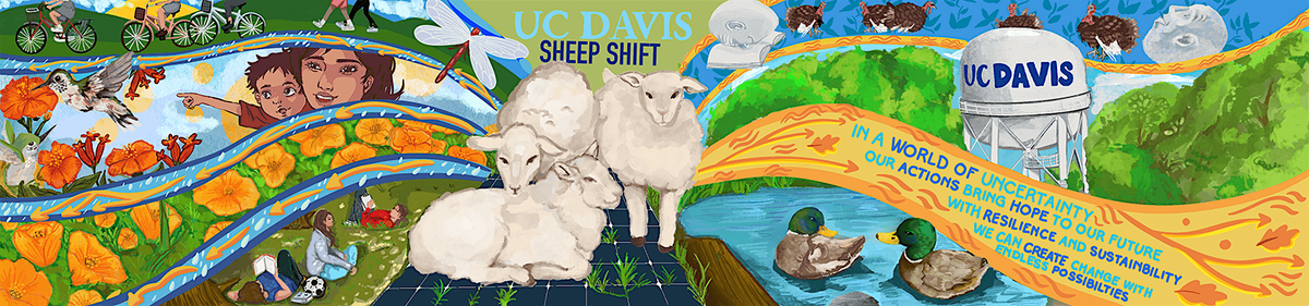 Grab a paintbrush and help bring Sheep Shift: Endless Possibilities to life! Join the UC Davis community for mural painting days celebrating sustainability, the beloved Sheepmowers, and the Big Shift—UC Davis’ transition to clean, electric energy.