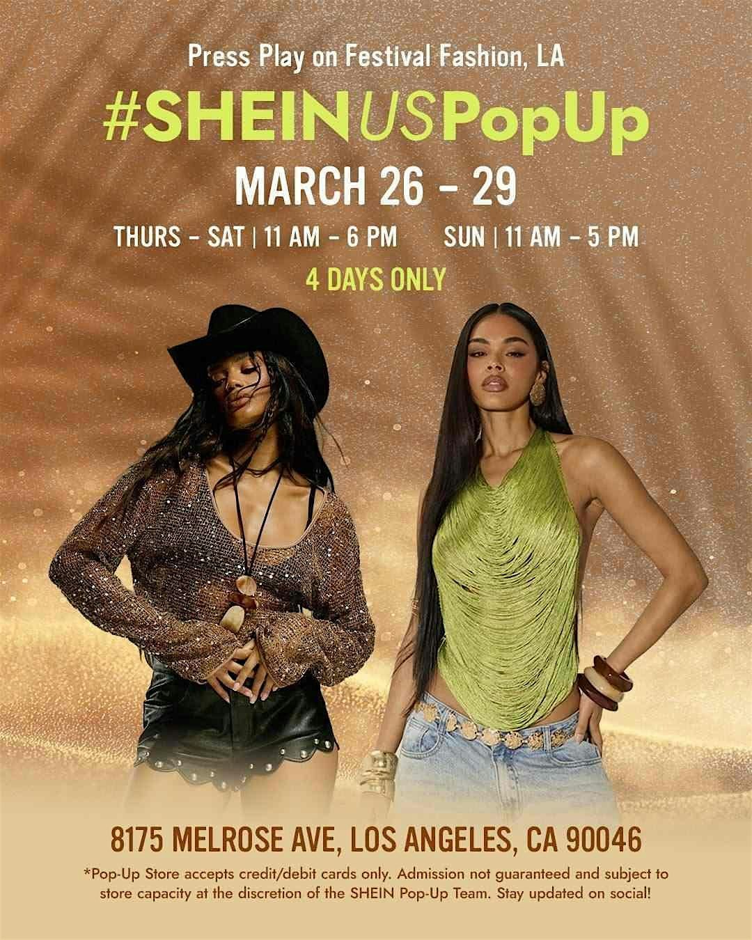 SHEIN is bringing a VIP experience straight to the public, encouraging all to attend and explore the latest trends and prep for their desert style. Guests can enjoy shopping on-site, an immersive photo moment perfect for social sharing, and more!