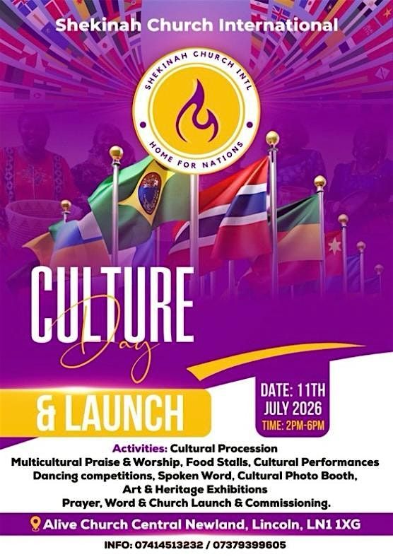Join us in person for the exciting Shekinah Church Official Launch and celebrate Culture Day together! It's a perfect chance to connect, enjoy vibrant cultural vibes, and be part of something special from the very start. Don’t miss out on this fantastic kickoff event where community and culture come alive!