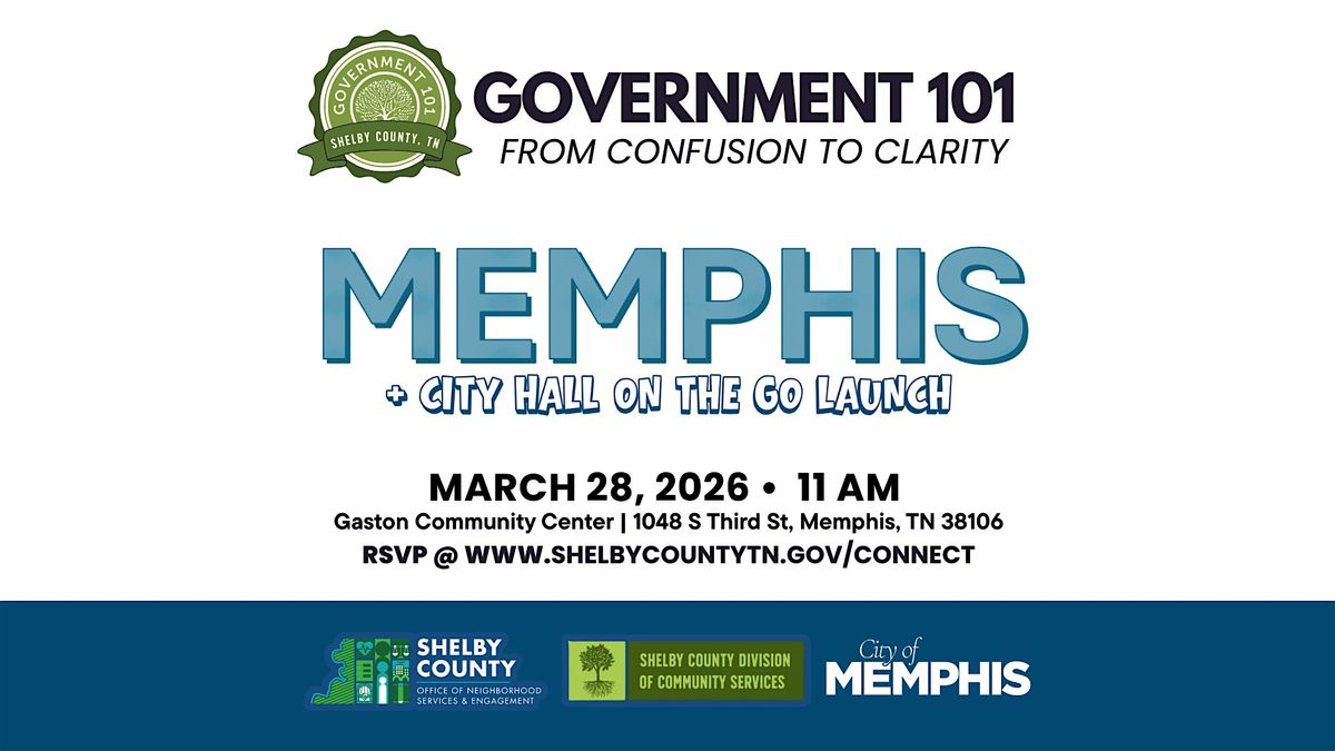 Ever asked, “Why hasn’t this been fixed?” or “Who’s actually in charge of that?” Government 101 in Memphis is a community-centered, interactive session that breaks down how local government works in real life, what the city handles vs what Shelby County Government handles, and exactly how to get help without getting the runaround.