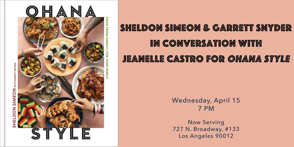 Sheldon Simeon, celebrated chef, restaurateur, cookbook author and Top Chef alumn with co-writer Garrett Snyder, award-winning writer and editor, in conversation for Ohana Style: Food from Hawai'i, for Your Family. Moderated by Jeanelle Castro, host of food and travel channel Jeanelleats. Book signing to follow.