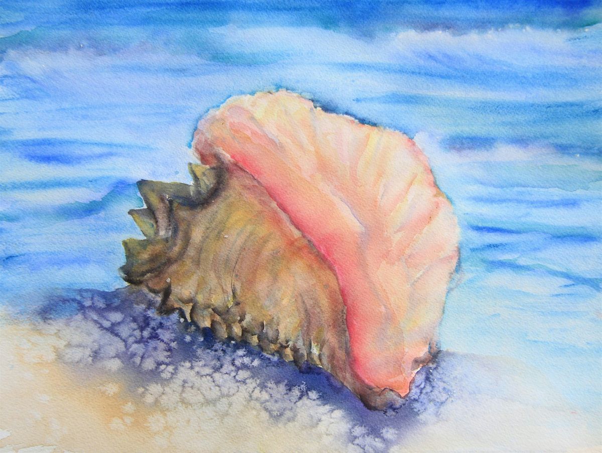 You’ll discover how light interacts with the shell’s surface and how to translate that into transparent washes, rich shadows, and detailed accents. Whether you love soft neutrals or want to experiment with bolder seaside hues, this class gives you the freedom to make it your own.