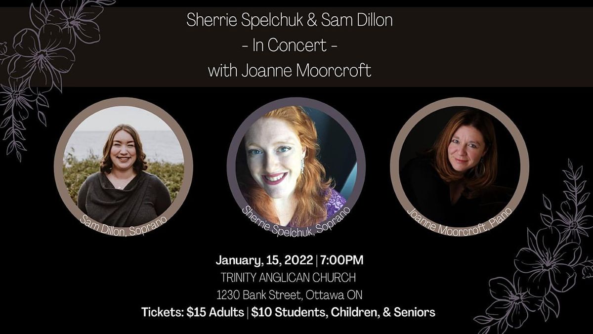 A concert of art songs and operatic selections, presented by Sherrie Spelchuk, Sam Dillon, and Joanne Moorcroft.