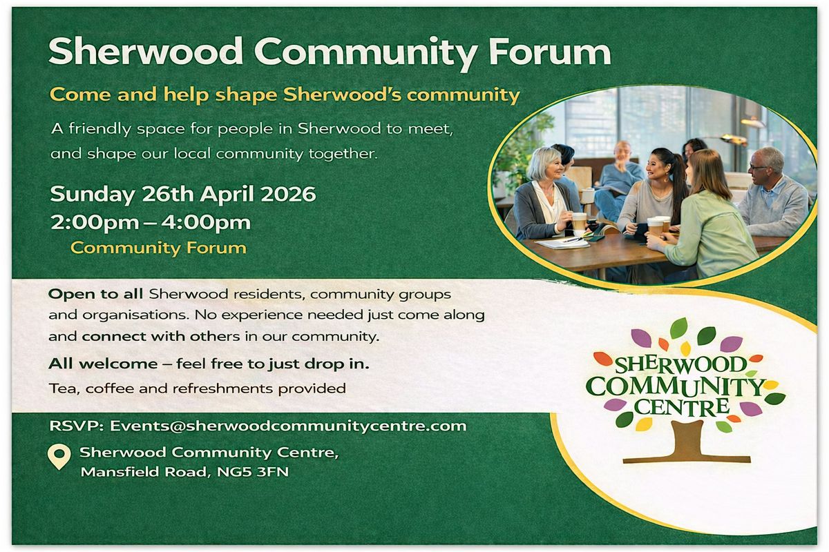 Join us at the Sherwood Community Forum - a relaxed, friendly space where residents, community groups and organisations can come together. When you arrive, you’ll be welcomed with tea and coffee, have time to chat informally, meet neighbours and local organisations, and hear about what’s happening in Sherwood. There will be opportunities to share your views, ask questions, suggest ideas and find out how to get involved in community activities and projects. Free parking is available in our on-site car park. The venue has step-free access and accessible facilities. If you have any access requirements, please feel free to get in touch. We’re happy to help.