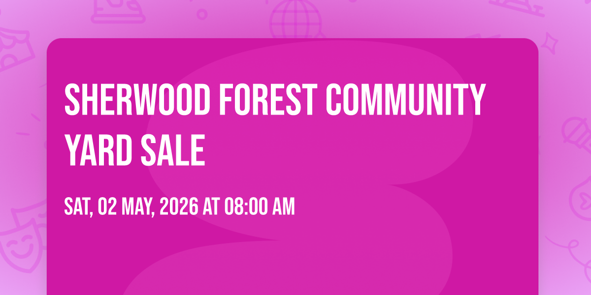 Community yard and garage sale in Sherwood Forest. Beginning at 8 am. Houses with balloons on mailboxes are participating.