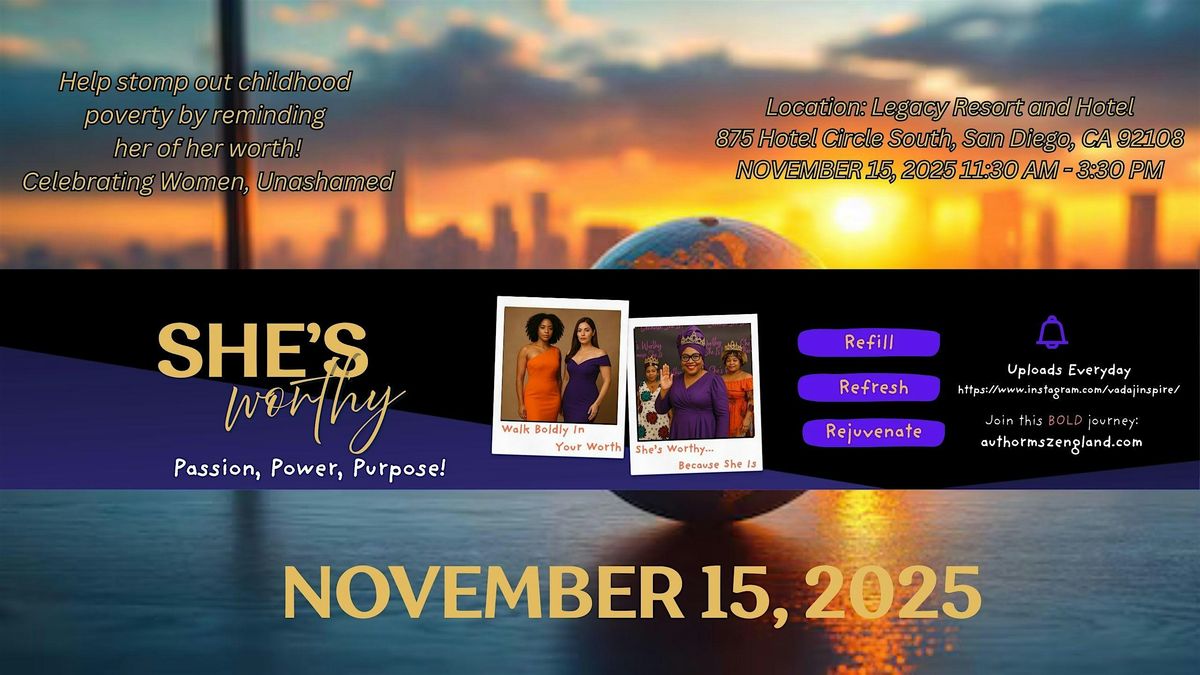 Step into an evening where legacy meets luxury and purpose meets power! She’s Worthy 2025 is more than a gala—it’s a celebration of the woman becoming whole, healed, and high-impact.