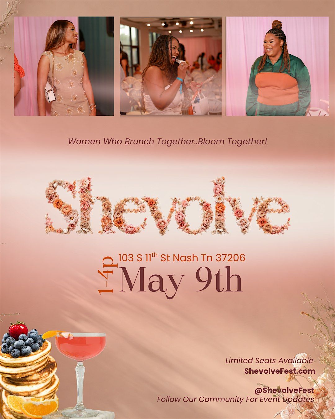 Welcome to Shevolve Fest 2026 — an elevated, intentionally curated brunch experience designed for the woman stepping into her next level with softness, confidence, and clarity.