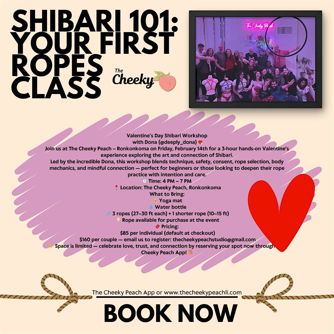 Join us at The Cheeky Peach β Ronkonkoma on Friday, February 14th for a 3-hour hands-on Valentineβs experience exploring the art and connection of Shibari.