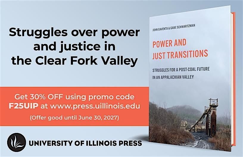 MacArthur Foundation Fellows, Dr. John Gaventa and Dr. Loka Ashwood, and UT faculty, Dr. Gabe Schwartzman (Geography) and Dr. Lindsay Shade (Sociology) will offer important insights into the growing inequalities in rural America, the changing nature of politics and citizen participation, and the possibilities of just transitions to new economies in the face of the decline of fossil fuels and climate change. Drs. Gaventa and Schwartzman will also discuss their new book, Power and Just Transitions: Struggles for a Post-Coal Future in an Appalachian Valley. Join the speakers after the event for a reception with light food and drinks.