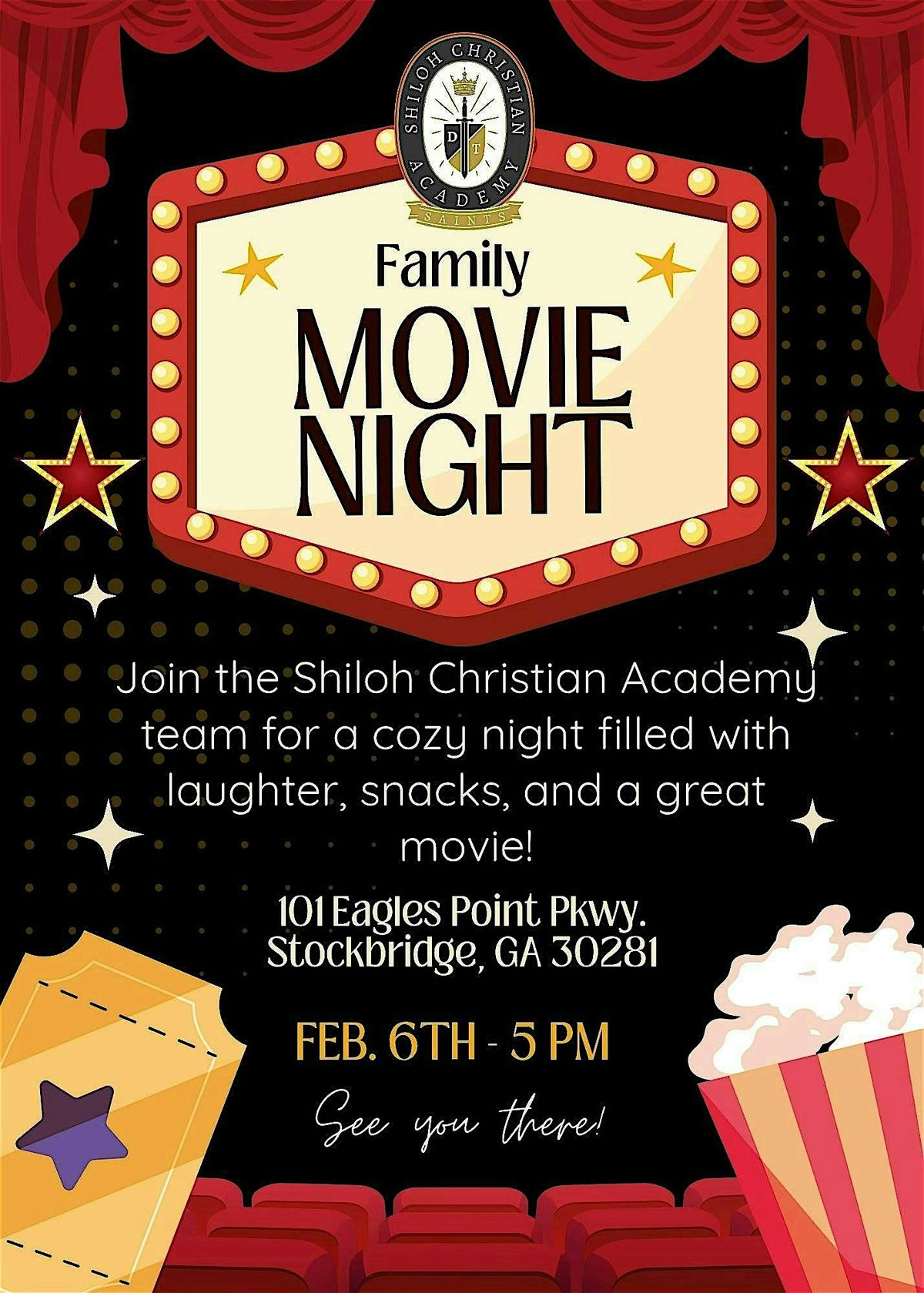 Shiloh Christian Academy invites families and local business partners to join us for a meaningful and memorable Family Movie Night on Friday, February 6, 2026, at 5:00 PM.
