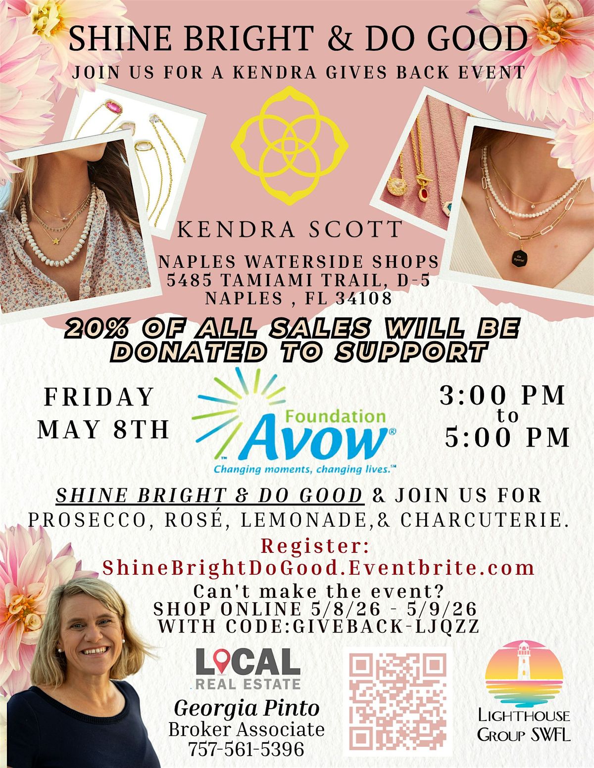Shop online at Kendra Scott and use code GIVEBACK-LJQZZ between 5/8/26 and 5/9/26 to ensure your purchase goes to support Avow Foundation.