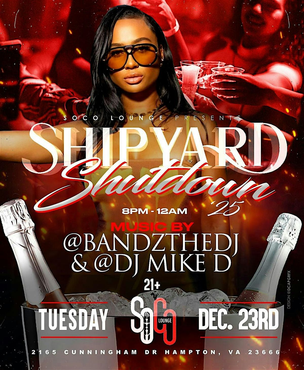 Shipyard Shutdown '25 is here! The moment y'all been waiting for. Vibes from 8pm-12am. 21+ Section/ticket info call 757-978-0000