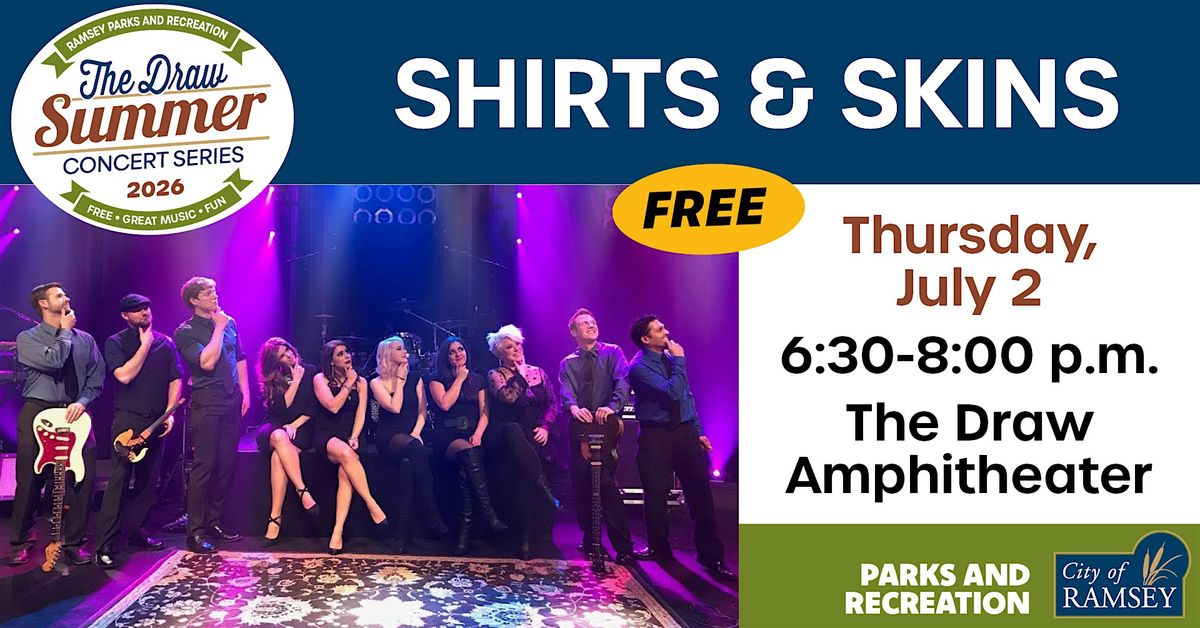 Shirts & Skins has played everything from small intimate weddings to the largest Oktoberfest in the United States and everything in between. Don't miss their dynamic, modular, national touring dance band right here in Ramsey!