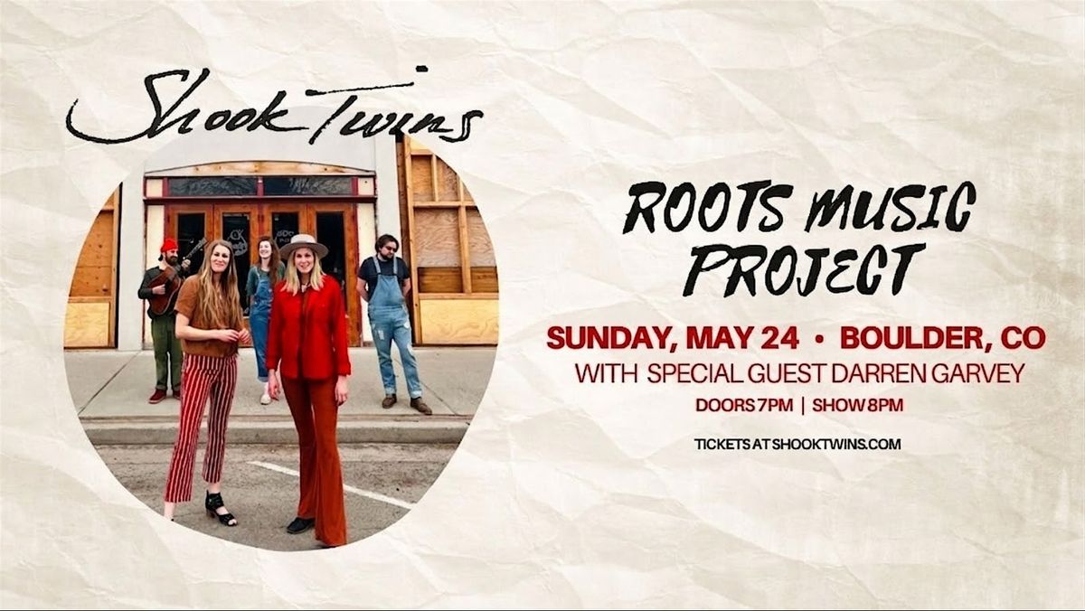 Twin sister duo Shook Twins bring their signature blend of indie folk pop to Boulder — think hauntingly angelic harmonies, beatboxing, telephone vocal tricks, and yes, the legendary Golden Egg. Backed by their full band, this is a night of groove, joy, and pure musical connection. Opening the evening, Colorado-rooted multi-instrumentalist Darren Garvey performs songs from his latest solo album, As A Scribble — intimate, rhythmically inventive, and full of heart.