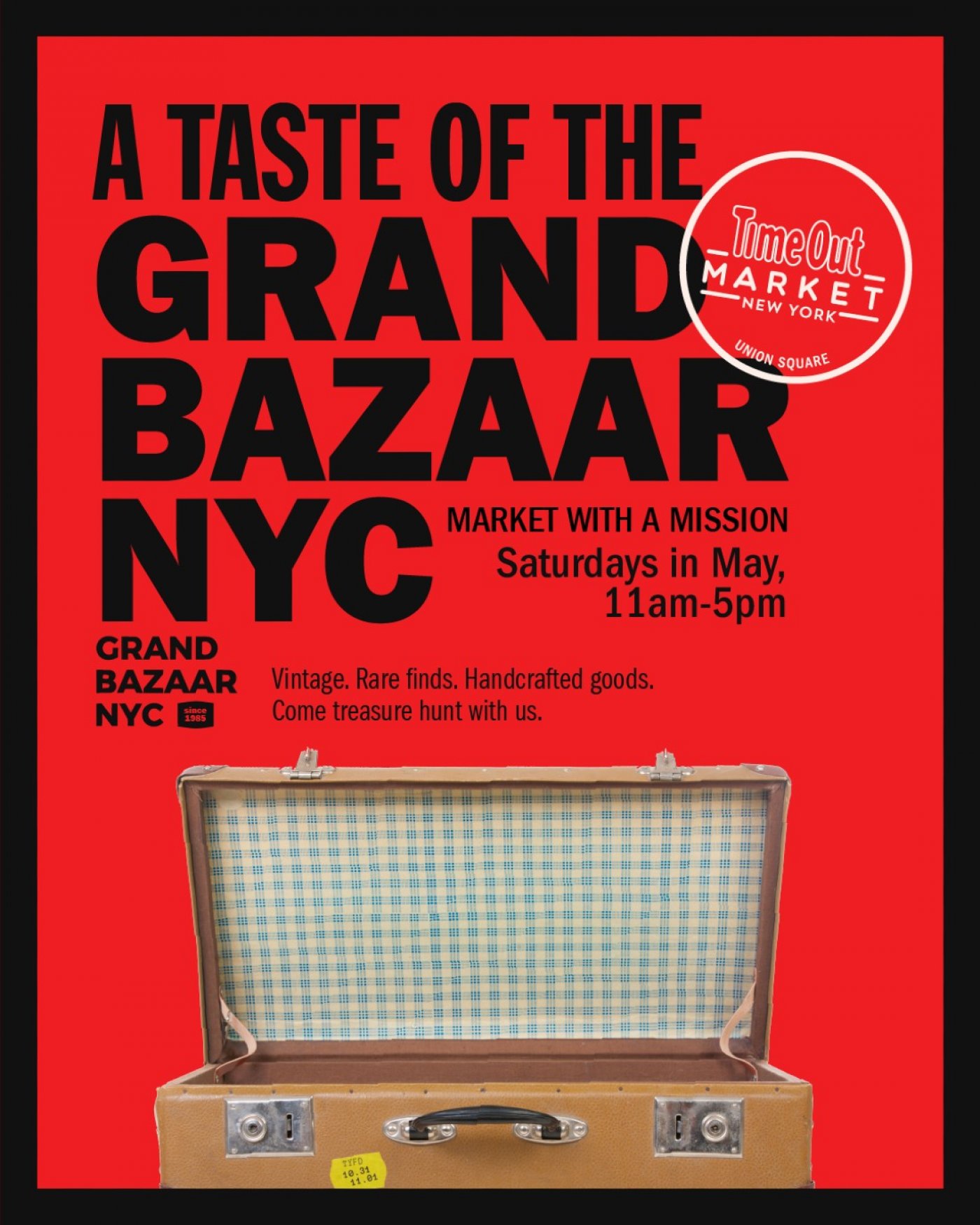 Discover a new curated shopping experience at Time Out Market Union Square (124 E 14th St.) as Grand Bazaar NYC opens a vibrant pop-up on Saturdays in May from 11 AM to 5 PM. Grand Bazaar NYC is the oldest, largest, and most diverse curated weekly market in New York City. Known as the market with a mission, it provides affordable retail space to local independent artists, designers, craft-makers, vintage and antique dealers, and artisanal food entrepreneurs, while donating funds to four local public schools, benefitting over 2,000 children. This lively marketplace showcases an eclectic mix of vendors offering everything from vintage fashion and coveted designer bags to artisan home goods, upcycled treasures, high-end antiques, and one-of-a-kind jewelry. Blending sustainability with style, the pop-up invites fashion lovers and trendsetters alike to browse, discover, and shop consciously in the heart of Union Square. At Time Out Market Union Square, a vast array of vendors—including Bklyn Wild, Kam Rai Thai, Fornino, Tacos Fonda and more ensure guests can seamlessly grab a bite and shop all in one vibrant space. For more information, visit: https://www.timeout.com/time-out-market-union-square