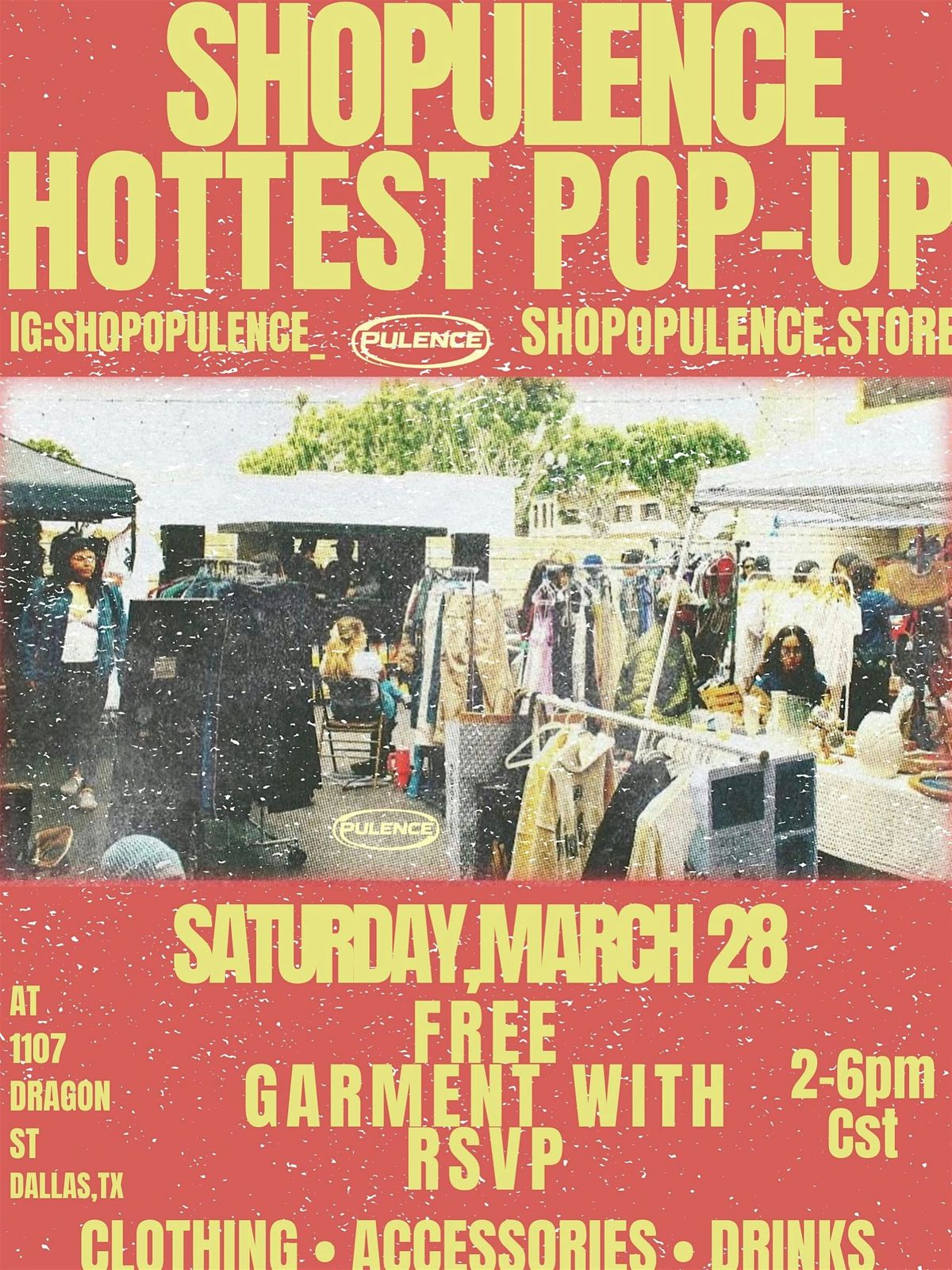 Join us on March 28, 2026 at 2:00 PM (Central Time) for an awesome in-person event at 1107 Dragon St! Don’t miss out on the chance to score a free garment just by RSVPing first 20 will recieve one. It’s all about style, fun, and good vibes. Bring your friends and experience the opulence firsthand!