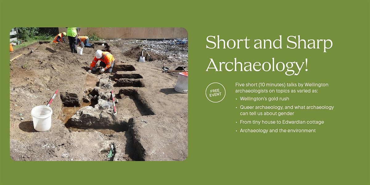 Five short (10 minutes) talks by Wellington archaeologists on topics as varied as: