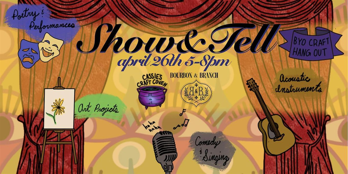 Come one come all, to share or to enjoy! All are welcome (and encouraged!) to join as audience members, crafters, and curiosity seekers. Attendees are also welcome to come with something to show or tell, to anyone who might be showing up to watch and listen.