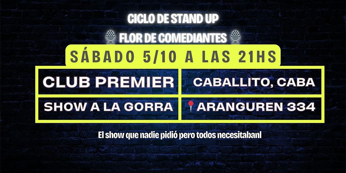 Vení a disfrutar de nuestro show de stand up en un lugar tan hermoso como el Club Premier. A dos cuadras de Parque Centenario. ¡IMPERDIBLE!