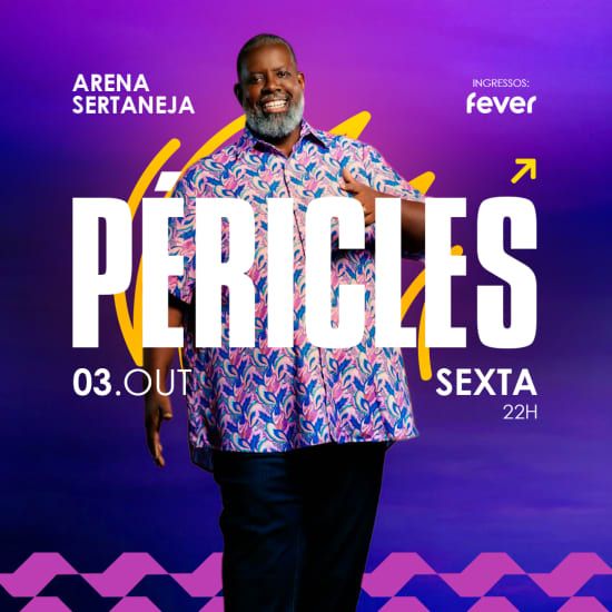 O rei da voz está chegando no Arena. Uma noite de pagode pra viver de verdade. 🚨 COMPRE AGORA R$24,50 cada (Combo 2 Ingressos) 🎫 Pista 🎫 Pista Premium 🎟️ Camarotes para 06, 08 e 10 pessoas É hora de cantar os clássicos, brindar com os amigos e sentir a emoção de cada refrão. Uma experiência única, feita pra ficar na memória. 📅 03 de outubro (sexta-feira) 🕒 Abertura: 22h 📍 Arena Sertaneja – São Paulo 🔞 18+ | ♿ Acessível ❓ Confira as FAQs do evento aqui 📞 Reservas de camarotes Clique aqui e fale direto no WhatsApp. Categorias de ingresso Promo Solidário Ingresso com preço reduzido + doação de 1kg de alimento não perecível na entrada, destinado a instituições parceiras. Inteiro Valor integral para quem não se enquadra em benefícios de meia-entrada. Meia-Entrada Direito garantido por lei a estudantes, PcD + acompanhante, jovens ID Jovem, idosos 60+, e professores da rede pública municipal de SP. Documento comprobatório obrigatório na entrada. 💘 O que te espera ✨ Setlist com sucessos como Melhor Eu Ir , Até Que Durou e Final de Tarde . 🏟️ Estrutura repaginada do Arena , plural e preparada para receber todos que amam viver a música. 🍾 Camarotes exclusivos, com vista privilegiada e conforto pra curtir cada detalhe. ⚠️ Importante: não é permitido entrar com camisa de time, chinelo, regata masculina ou roupa de partido político. Vem leve e bem à vontade. Descrição Algumas noites são mais do que shows: são encontros. Péricles no Arena Sertaneja é a chance de viver um pagode que conecta gerações, emociona e transforma música em memória. 🎤 Garanta seu ingresso e venha fazer parte dessa noite inesquecível.