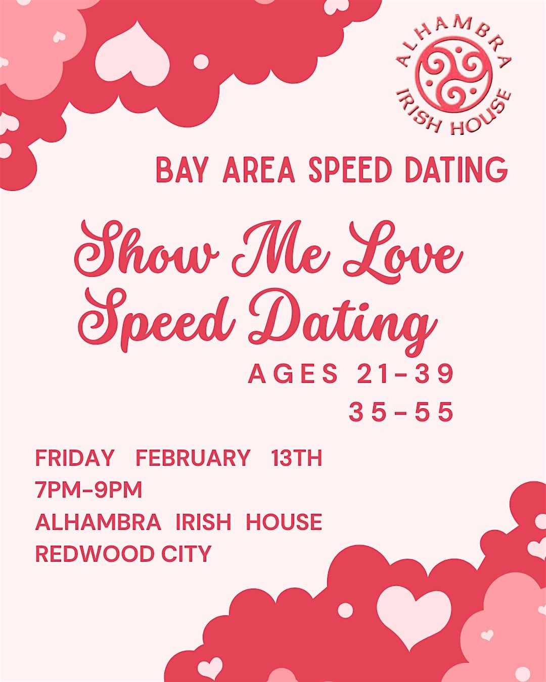 Welcome to the Show Me Love Speed Dating event! Get ready to meet new people and potentially find love in a fun and exciting way. Join us at the Alhambra Irish House in Redwood City on Friday, February 13th at 7:00 PM.