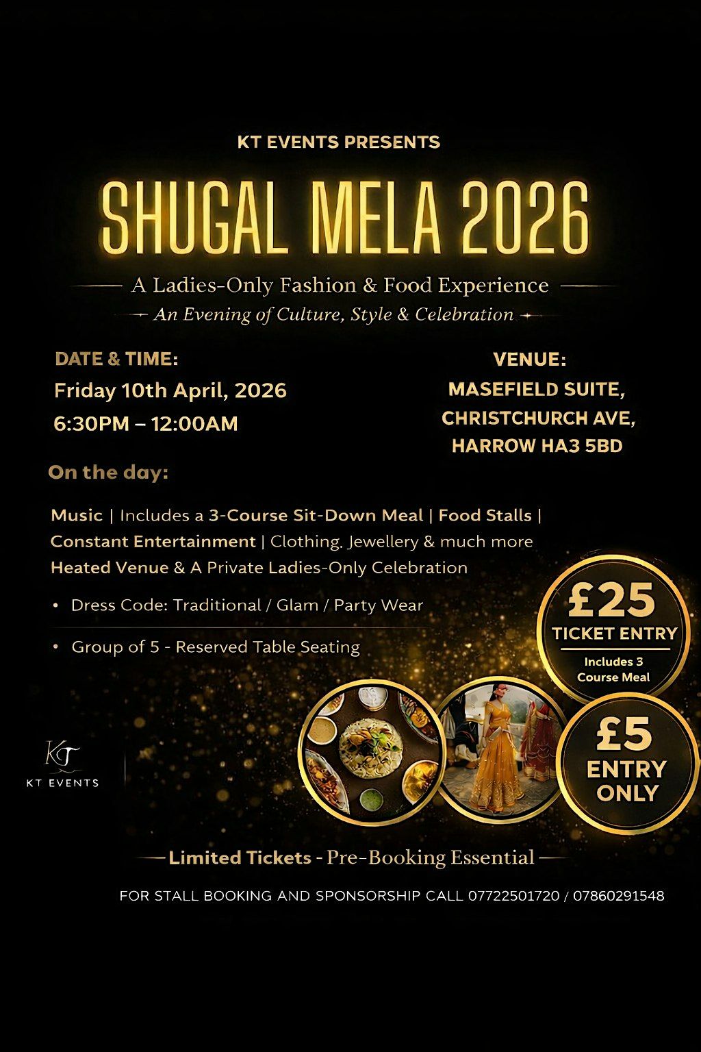 Join Shugal Mela 2026 for music, a 3-course meal, cultural stalls, and family-friendly fun celebrating Pakistani & Indian traditions!