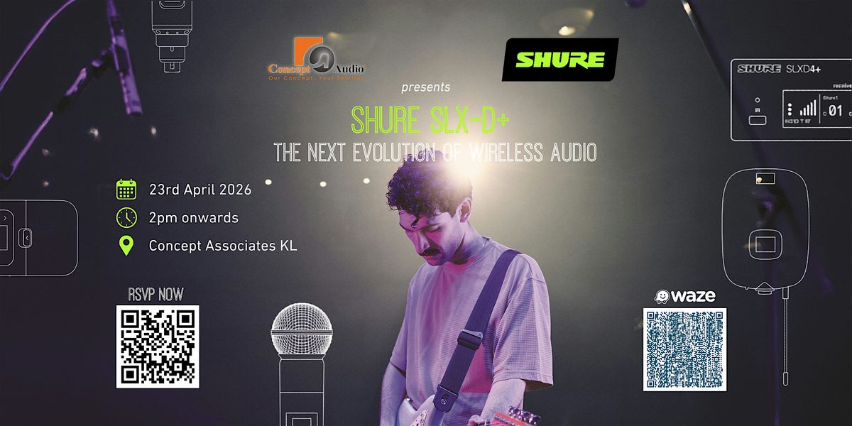 Join us for an exclusive showcase on 23rd April 2026, 2PM onwards at Concept Associates (KL) Sdn. Bhd.. Discover how the latest SLX-D+ system delivers crystal-clear digital audio, improved RF stability, and smarter control with ShowLink® technology.