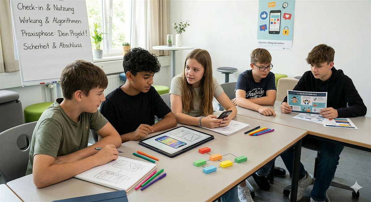 - Praxisphase – Dein Projekt: Jetzt bist du dran! In Kleingruppen entwickelt ihr eine eigene Strategie oder ein Video zu einem Medienthema, das euch wichtig ist.