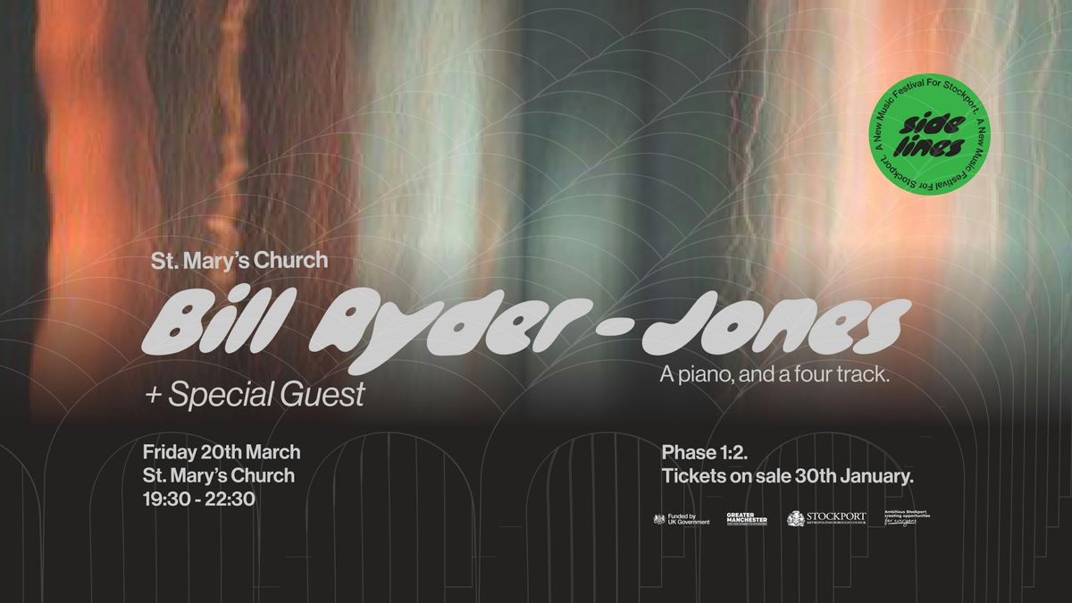 Our second test event is here. For 1.2, Bill Ryder Jones performs a rare solo piano and four-track set beneath the vaulted ceilings of the magnificent St. Mary’s Parish Church, Stockport.Joining the bill is Clementine March and Lei Hope in support. Lei’s warm, introspective, soulful grooves will fill the space ahead of Clementine’s emotive, melody-rich songwriting lead into a rare piano and four track set from Bill.