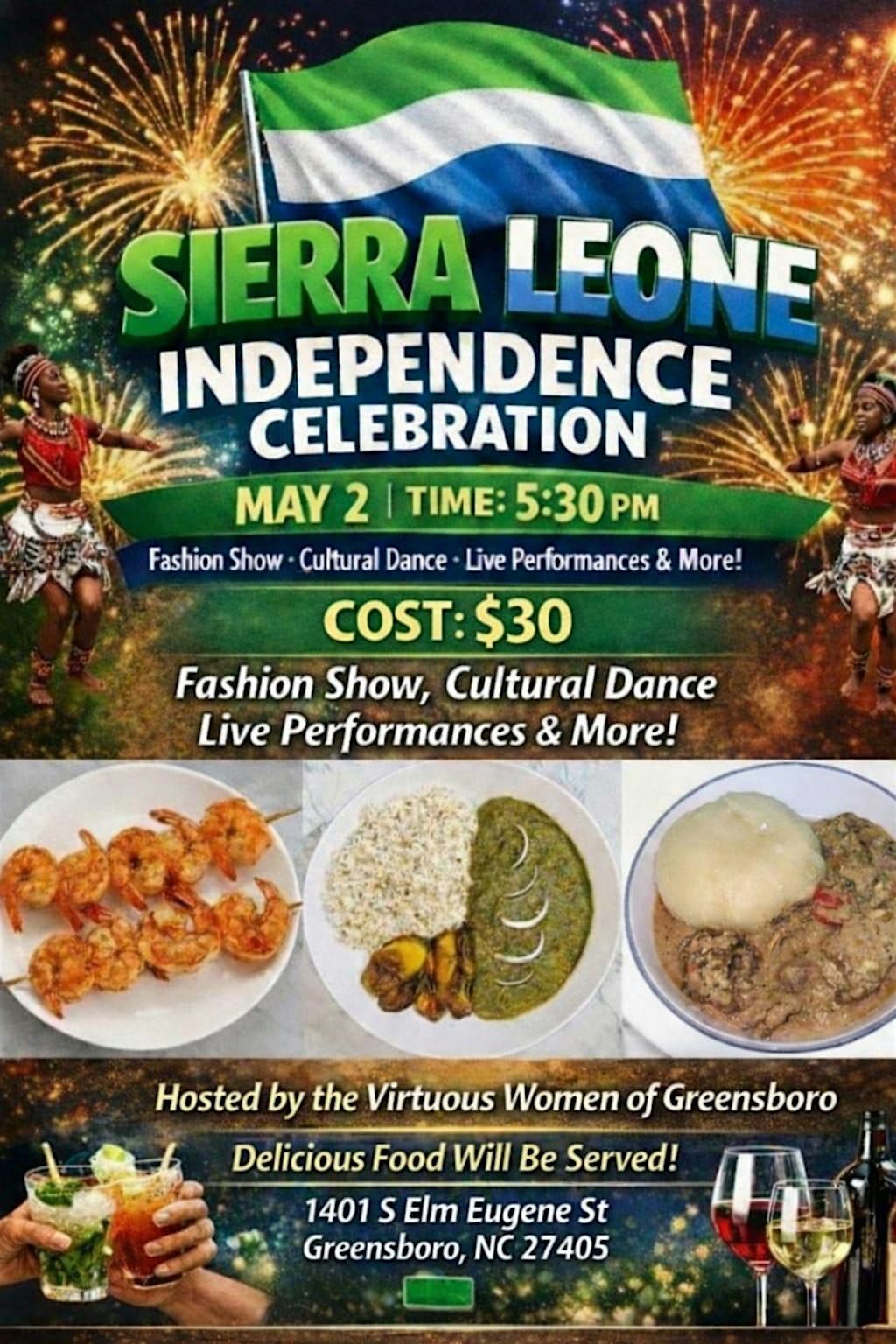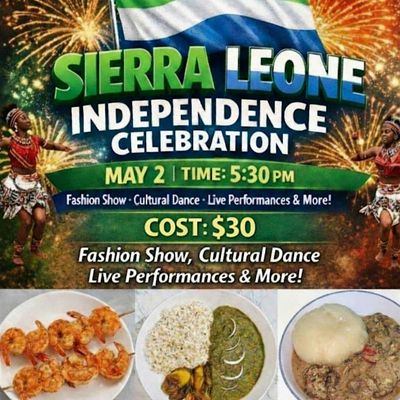 Join us in person for an unforgettable day filled with fun, music, and cultural vibes as we honor Sierra Leone's proud journey to independence. It's the perfect chance to soak up the spirit, meet great people, and enjoy traditional food and festivities. Don't miss out on this lively celebration — bring your friends and family for a fantastic time!
