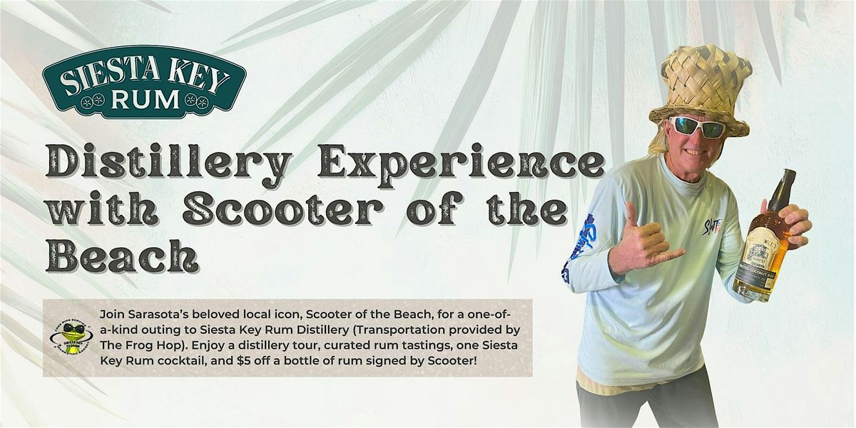 - Round-trip shuttle transportation provided by The Frog Hop, with departures from Siesta Key Beach main entrance and The Big Tiki Lounge in Siesta Key Village. *The Frog Hop can also provide transportation to either departure location if needed. Scooter will hop on one shuttle each way to and from the distillery—bringing his signature energy, stories, and fun along for the ride!
